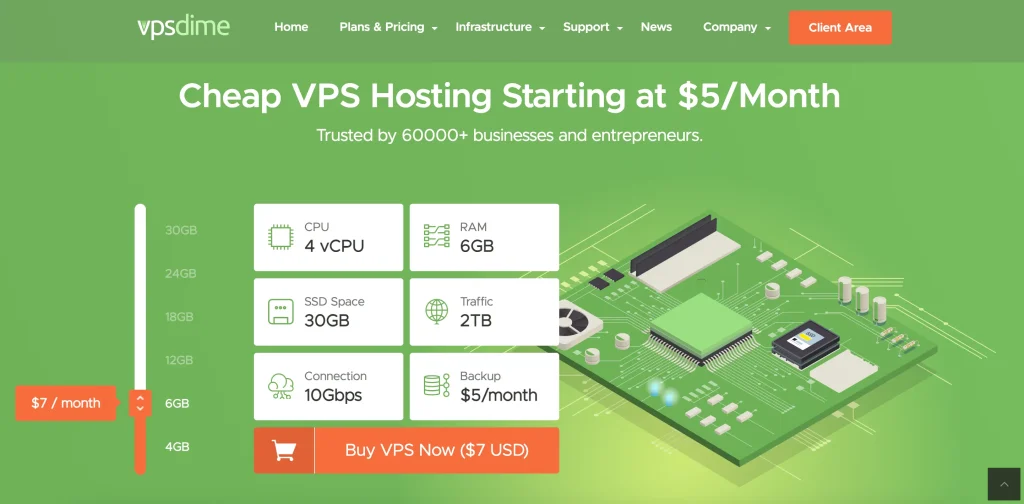 VPSDime | $7/mo | $5.00/mo | $2.00 | Storage Heavy | 6GB RAM, 4 vCPU, 30GB SSD | 7.5/10 | 3.5/5 |