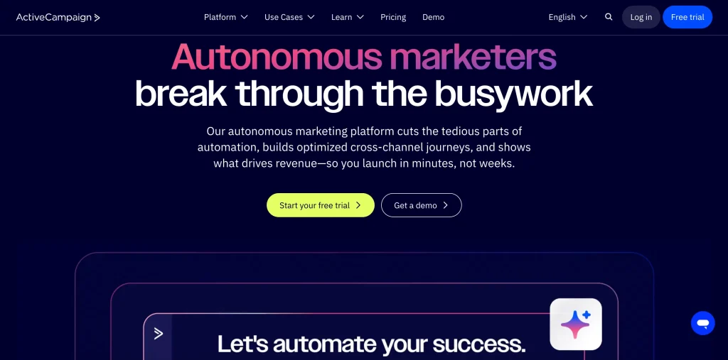 Comprehensive marketing automation platform combining email, CRM, and sales automation.
