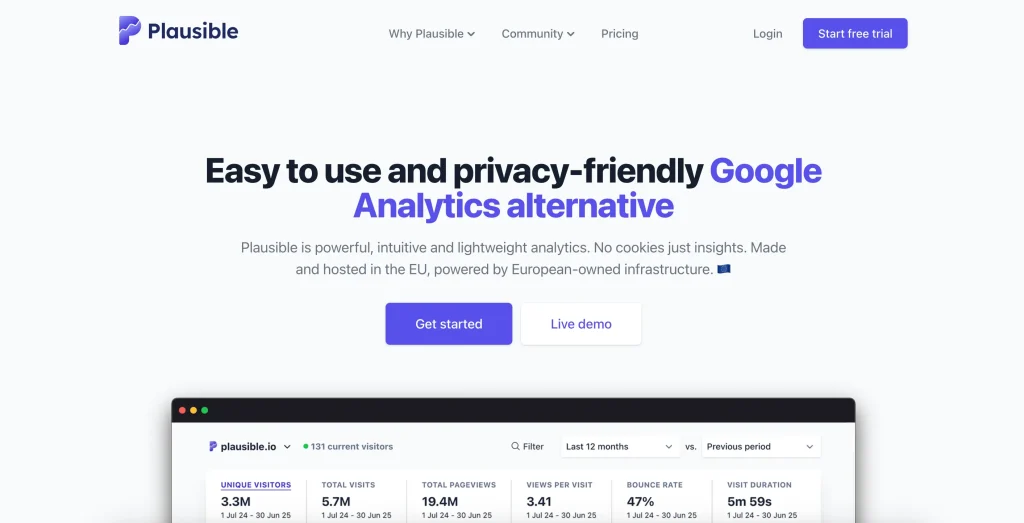 Privacy-focused analytics alternative that respects user data while providing essential insights.